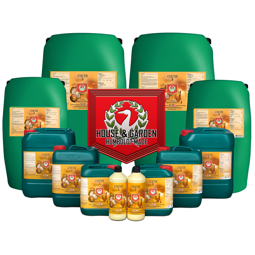 - Coco A+B de House & Garden es un fertilizante líquido de dos partes diseñado específicamente para cultivos en sustrato de coco. Su formulación 100% soluble en agua asegura una nutrición de alta calidad y una óptima transferencia de nutrientes desde la raíz hasta el follaje. Con una baja tasa de dilución y máxima concentración, es una solución profesional para todo el ciclo de cultivo.