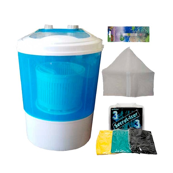 The Secret icer washing machine is the solution you need. This complete kit allows you to extract the best hashish in the water in just a few minutes, thanks to its efficient centrifuged system and the use of cold water and ice. Get The best performance of your crops with the secret washing machine.