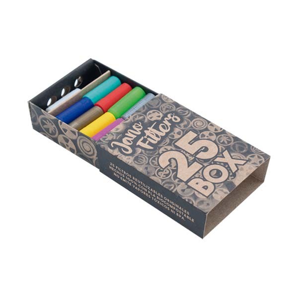 La boîte de carton de recyclage des filtres Jano 25 Jano d'origine contient 25 filtres réutilisables et biodégradables. Ces buses, qui n'émettent aucune vapeur toxique ou BPA, ont été fabriquées dans de l'acide polylactique et sont disponibles dans une boîte idéale pour toujours emporter avec vous n'importe où.